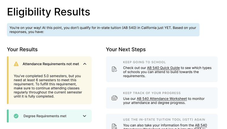 The existing results emphasized status over explanation, leaving users unclear about unmet requirements and next steps.