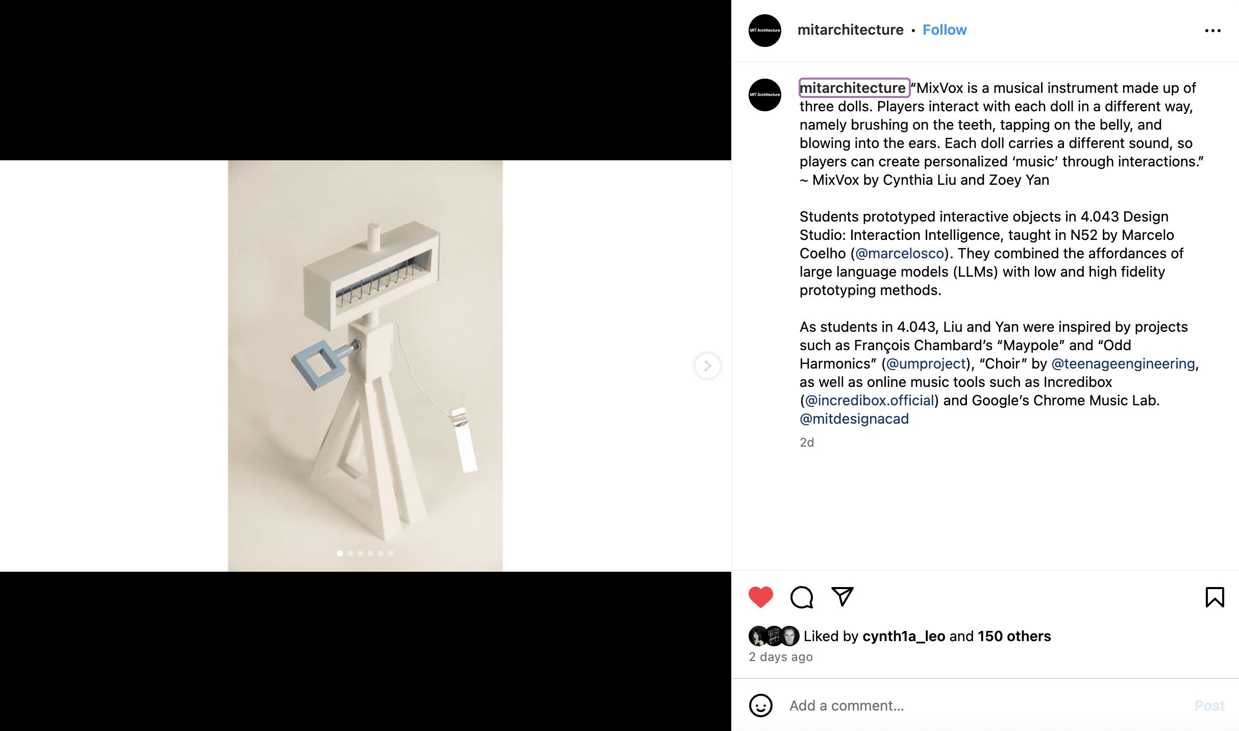 Our work featured on both @mitdesignacad and @mitarchitecture‘s instagram post!