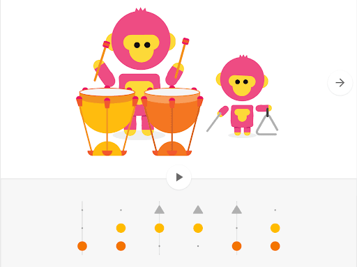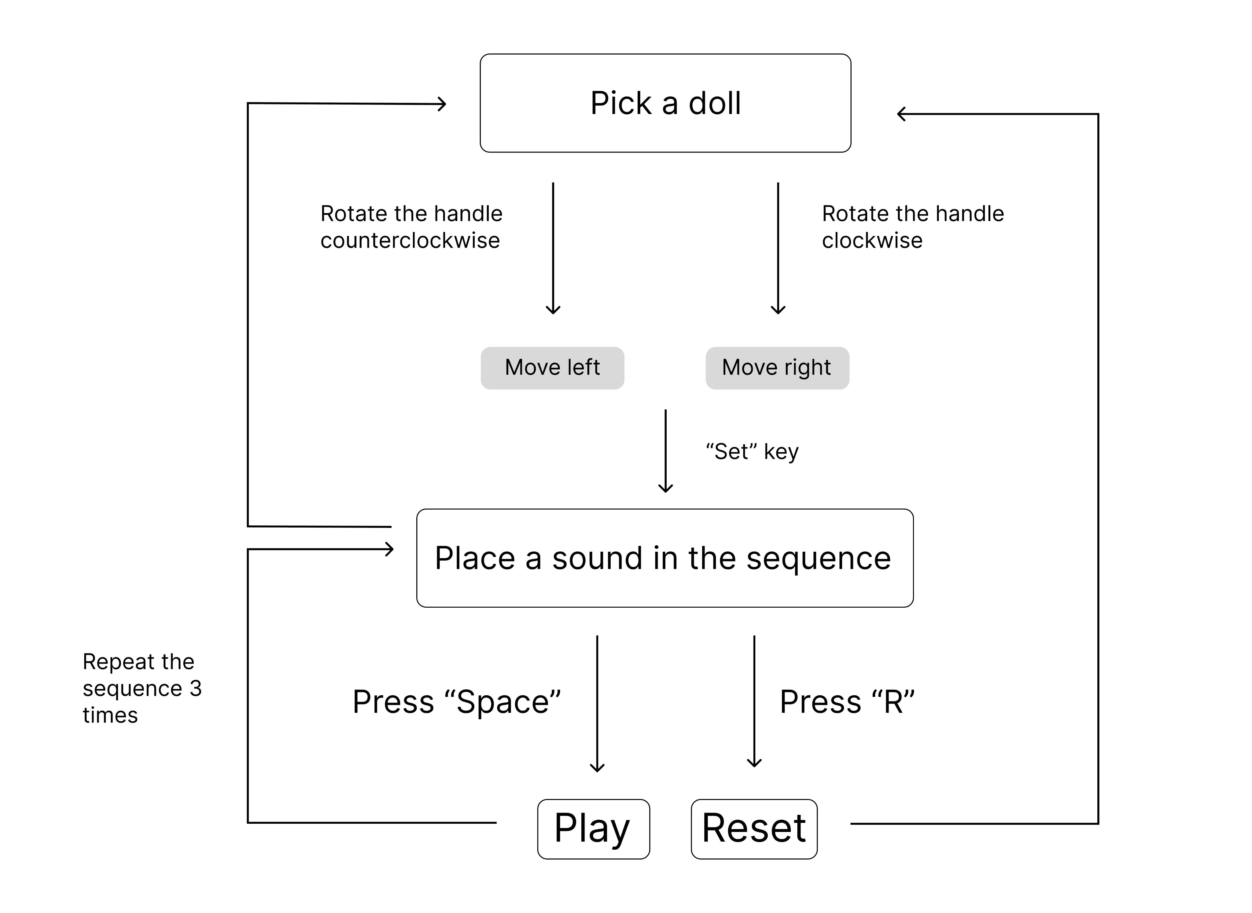 Player rotate the handles on the side of the dolls to move the dolls and place colored audio blocks in the sequence by: