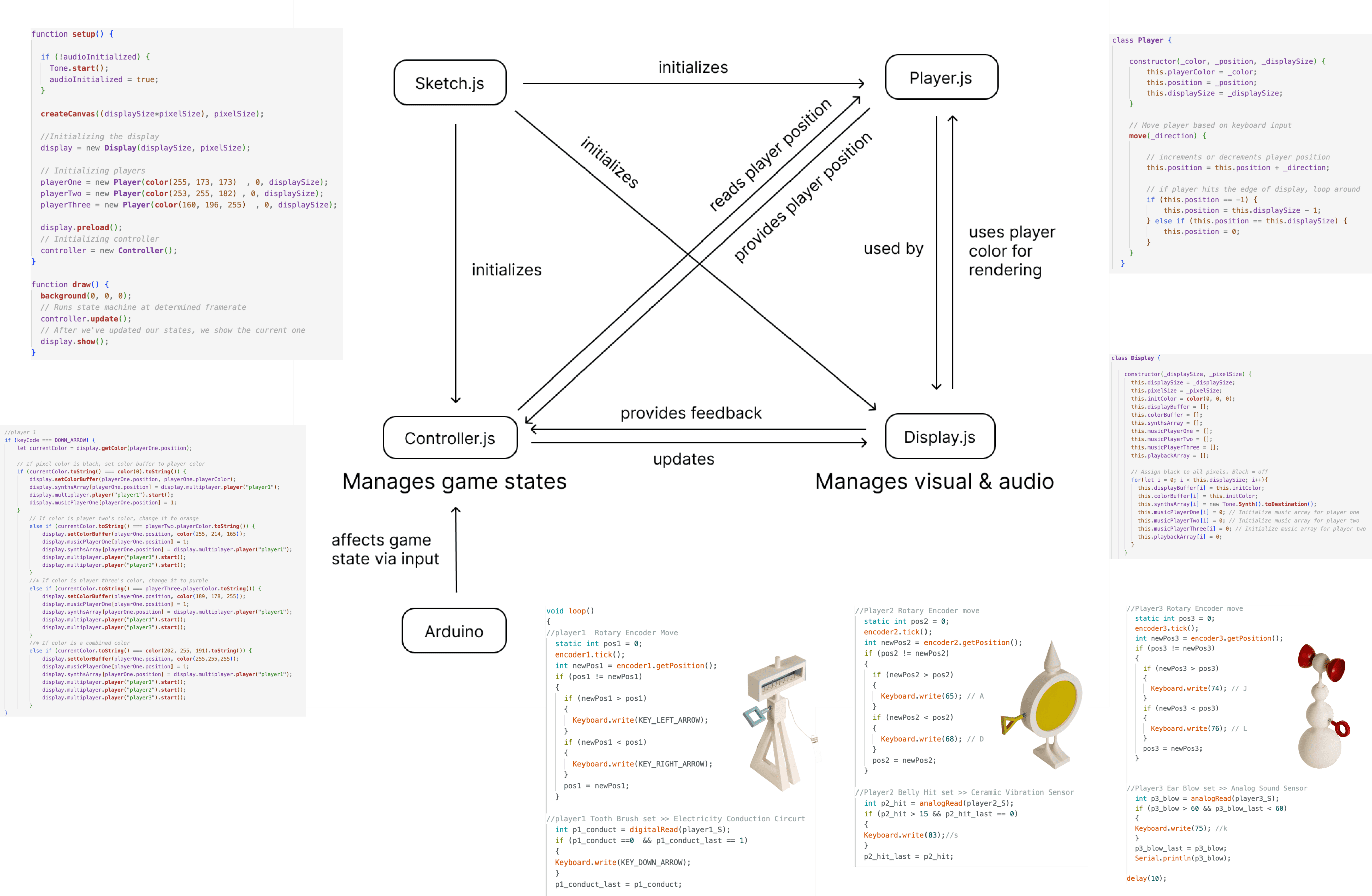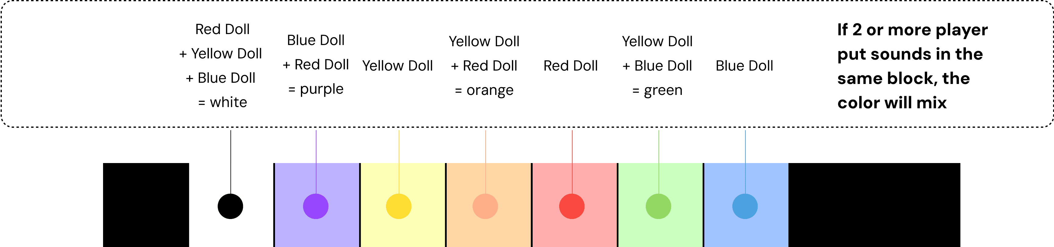 We integrated physical instrument into a 1D game format. Players can navigate the dolls along the 1D line, laying down unique sounds as they go