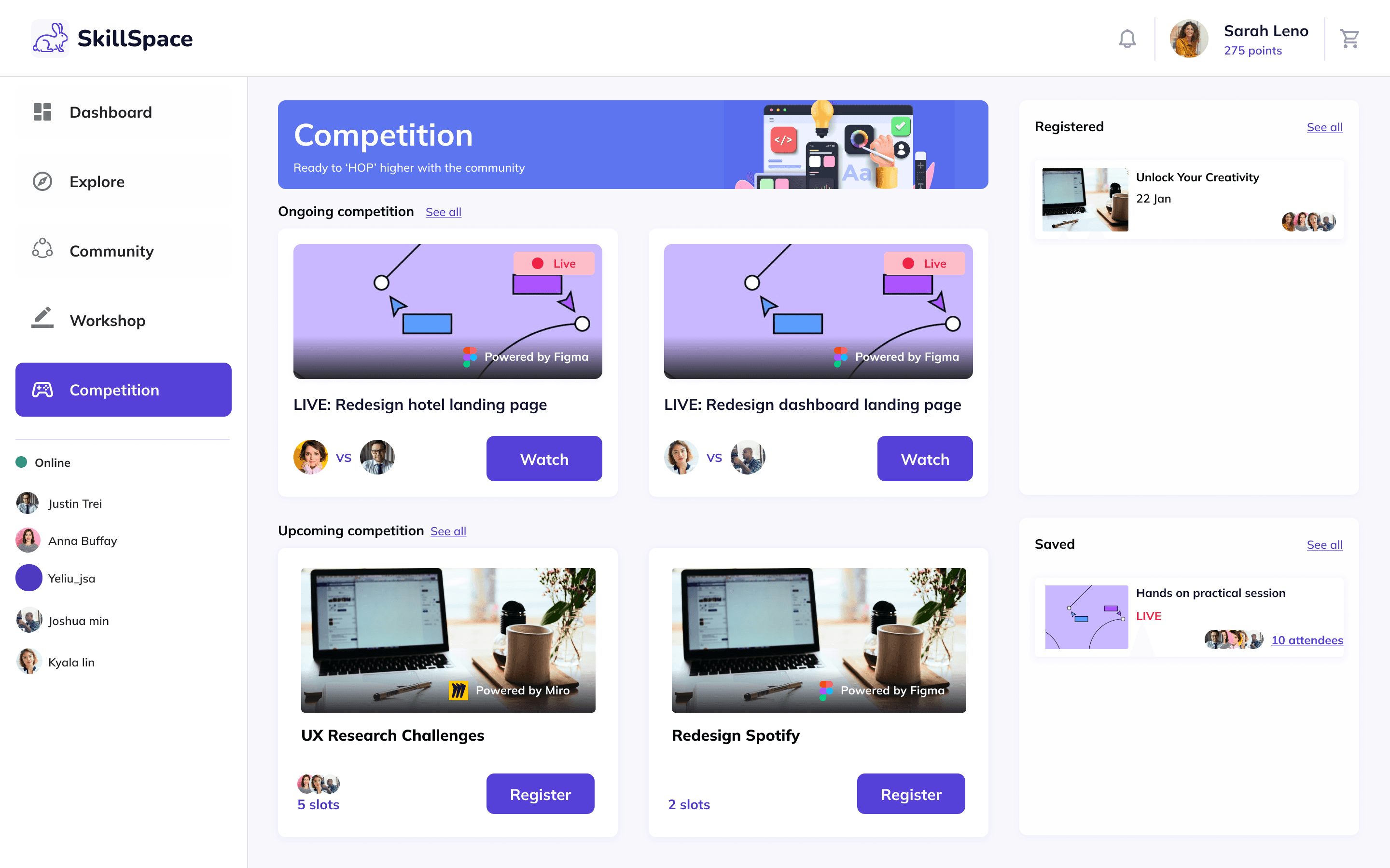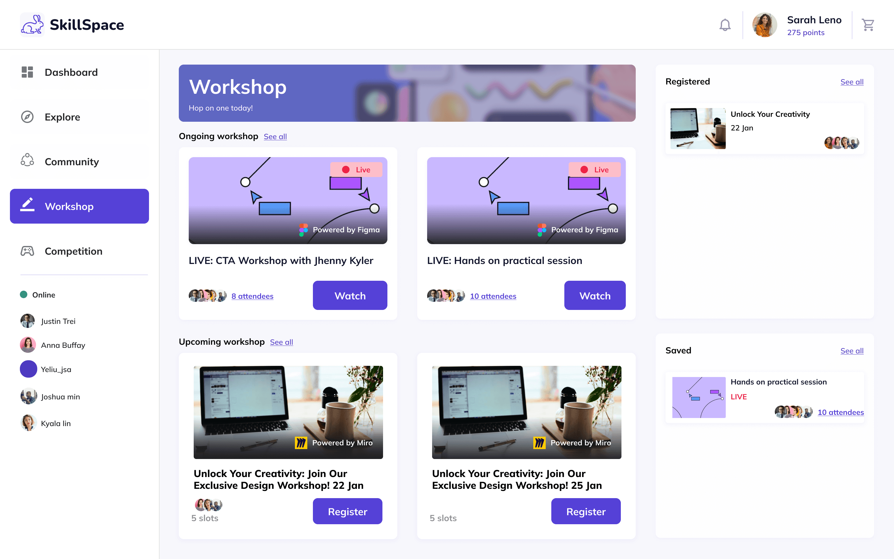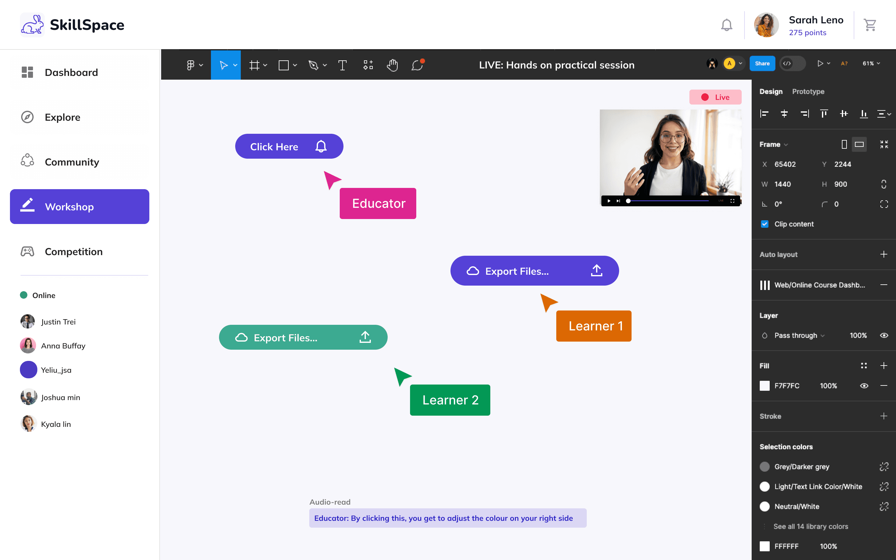 Live sessions powered by well-known products (e.g. Figma, Miro)