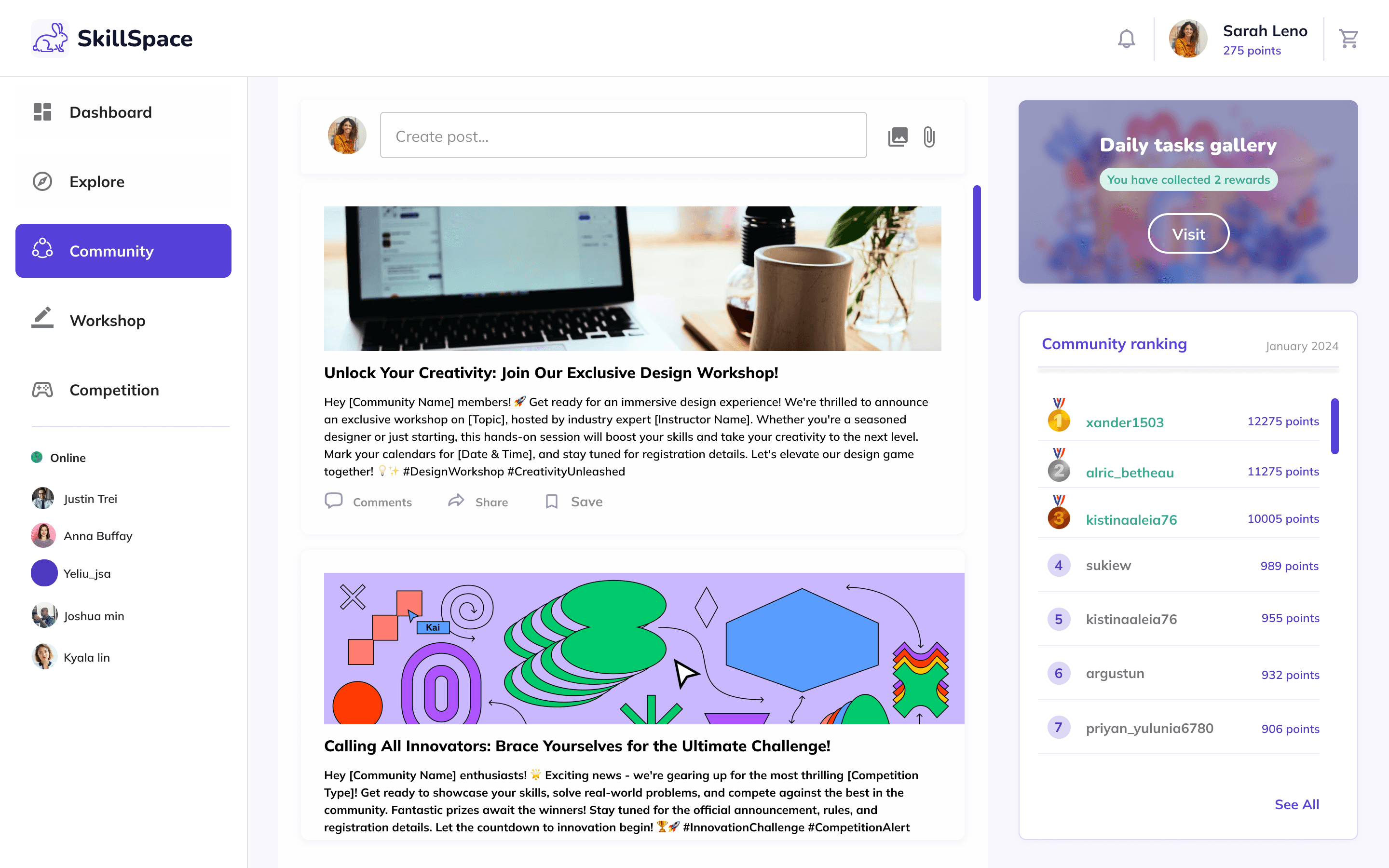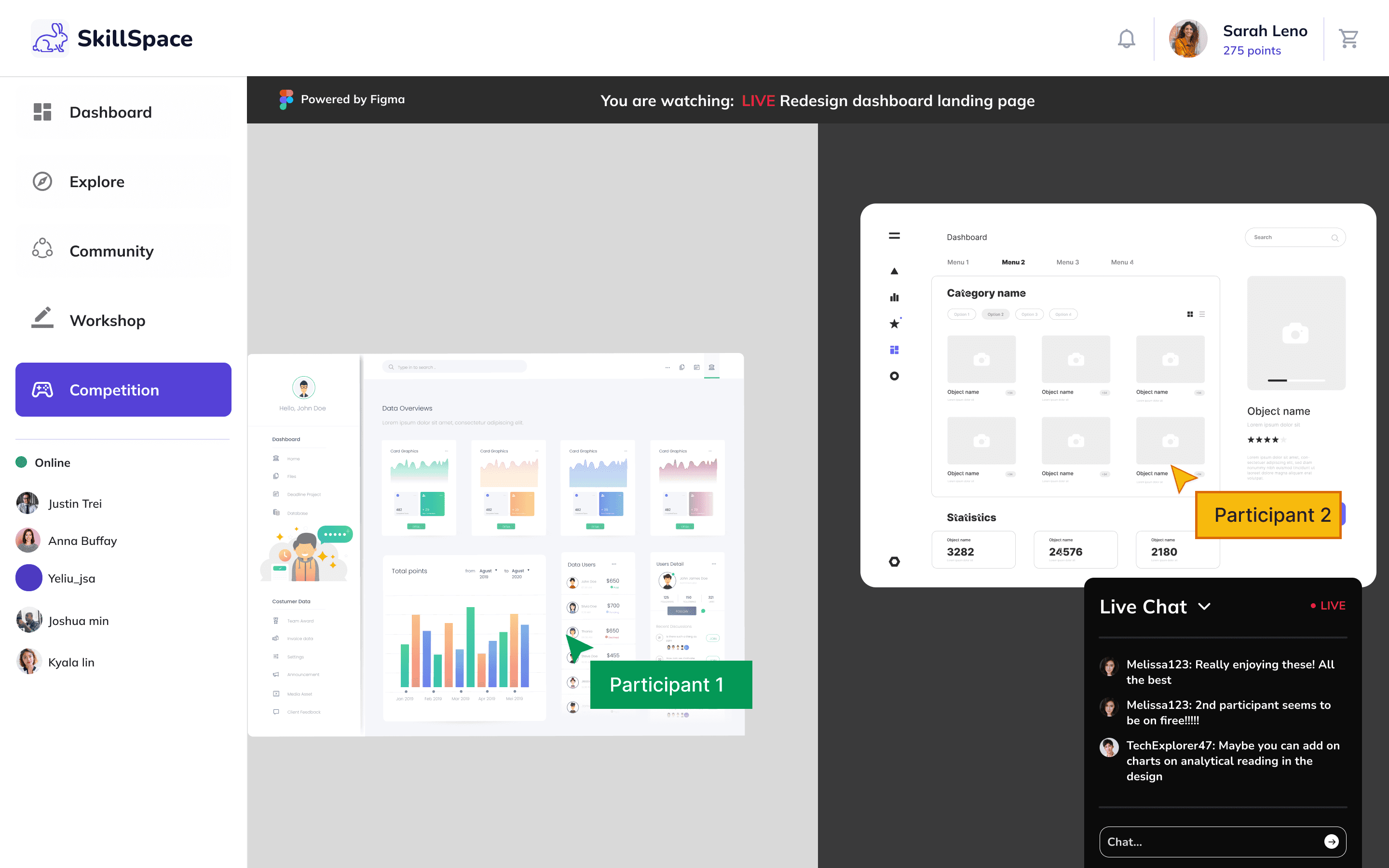 Live sessions to promote healthy competition between users and learn from each other