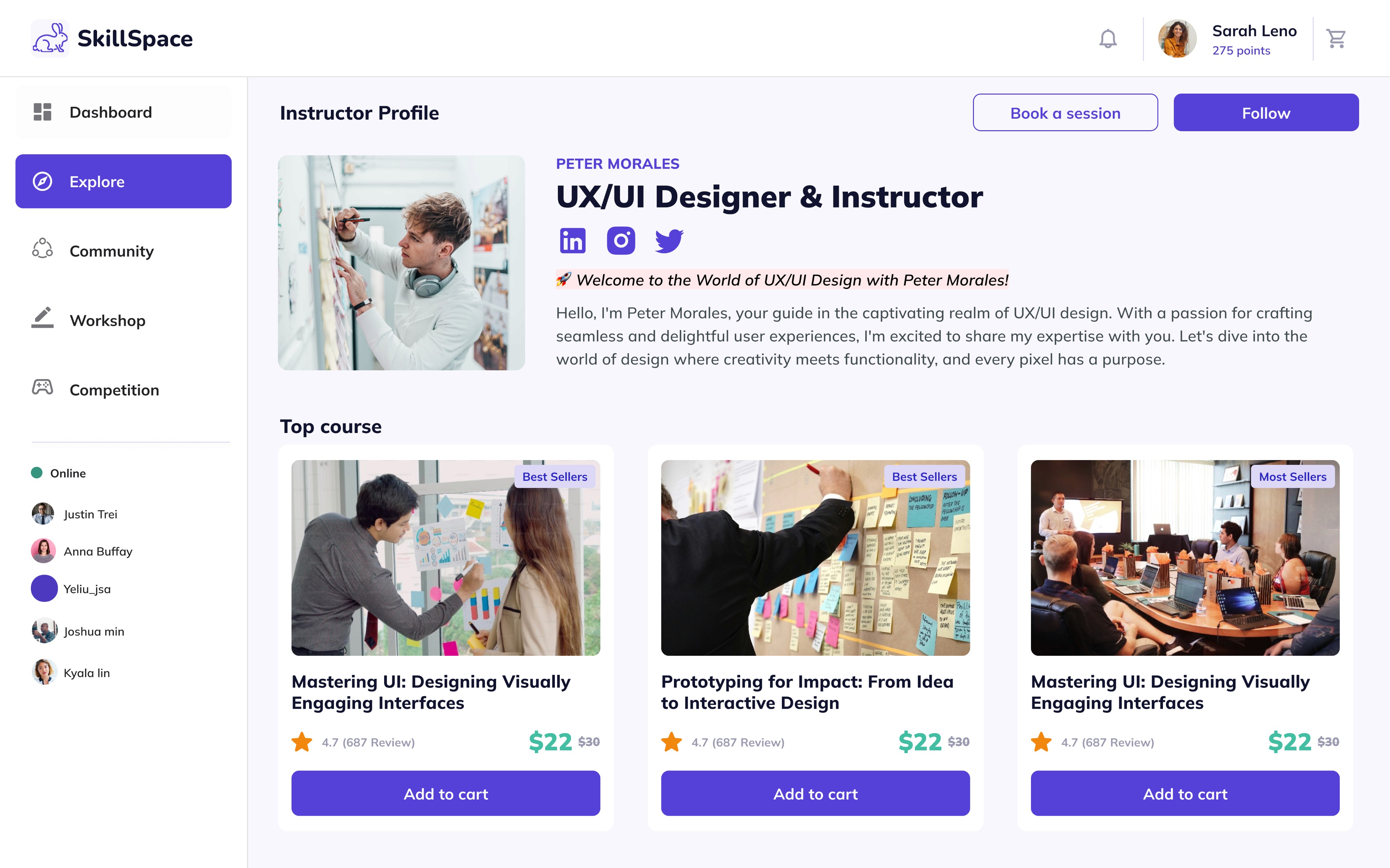 Able to book session with mentor for guidance, and follow instructor profile to know more on their learning and updates