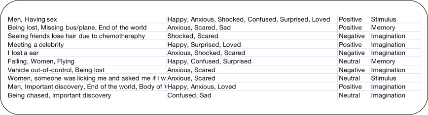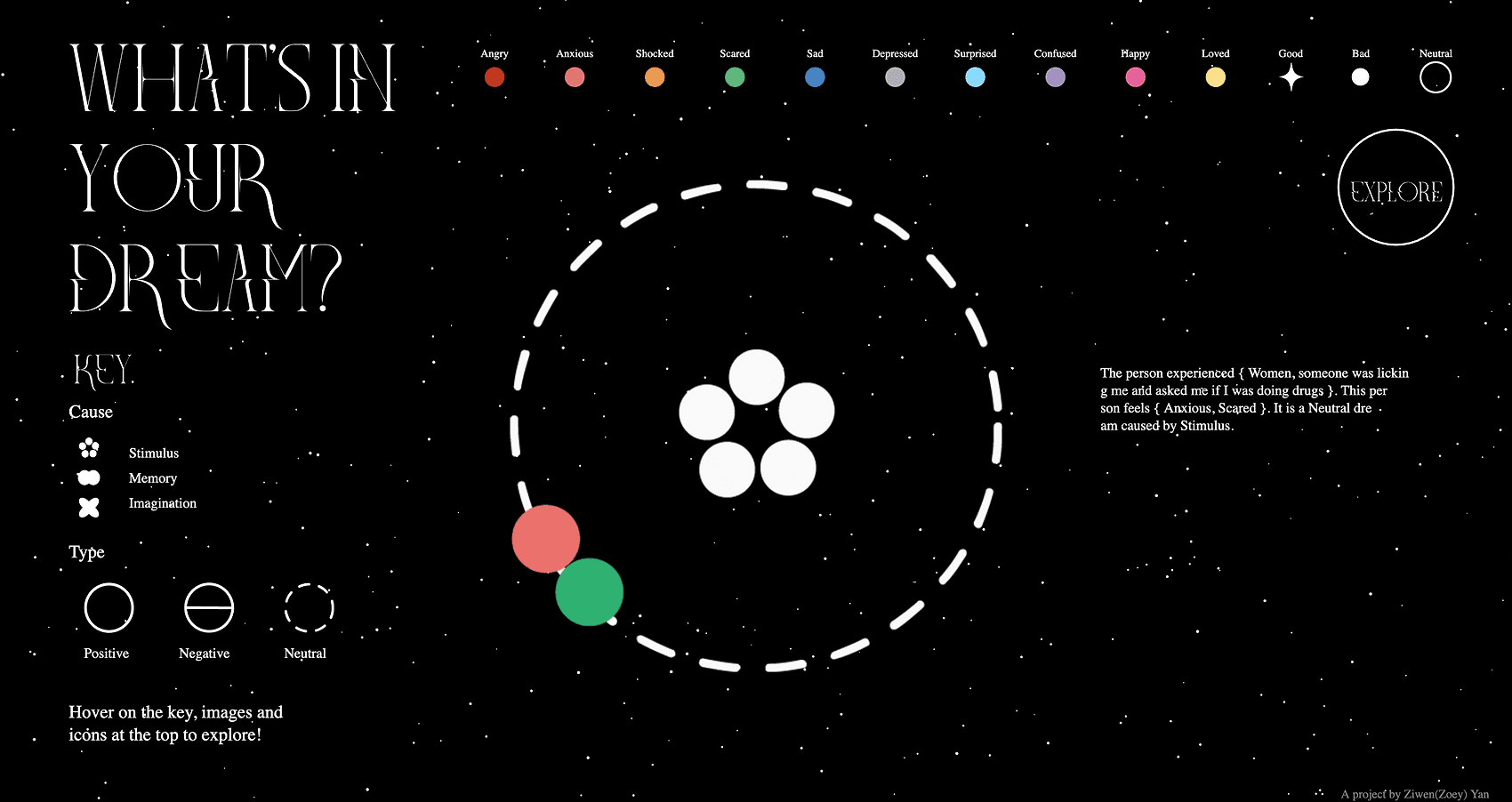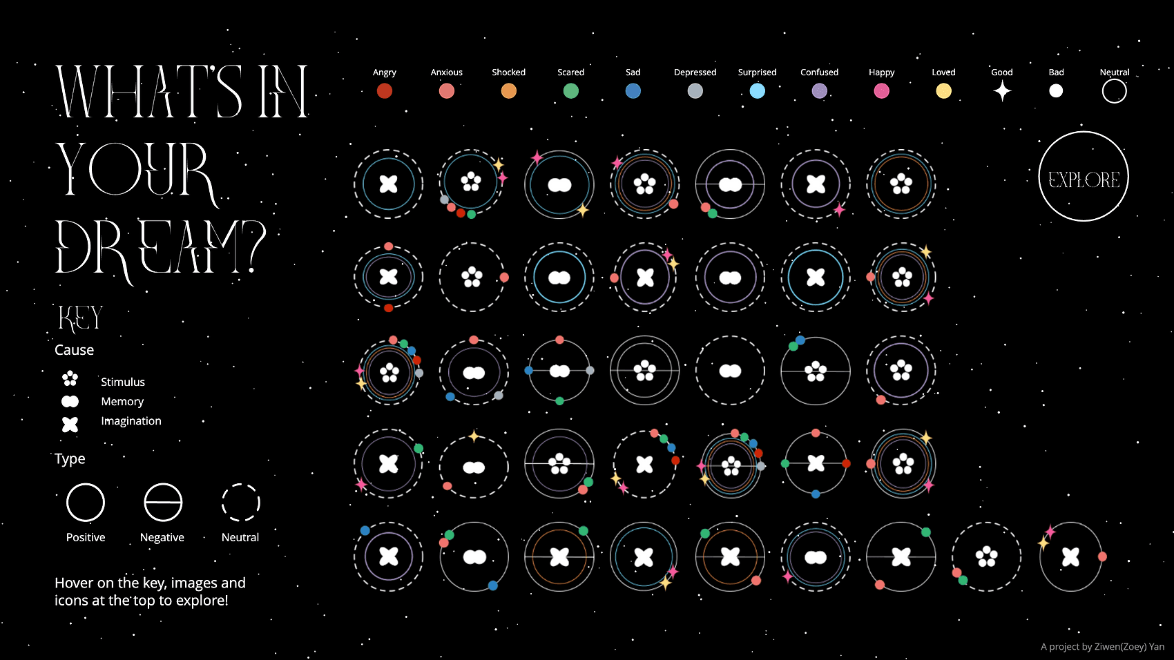 Hover on individual icons to see details about the dream